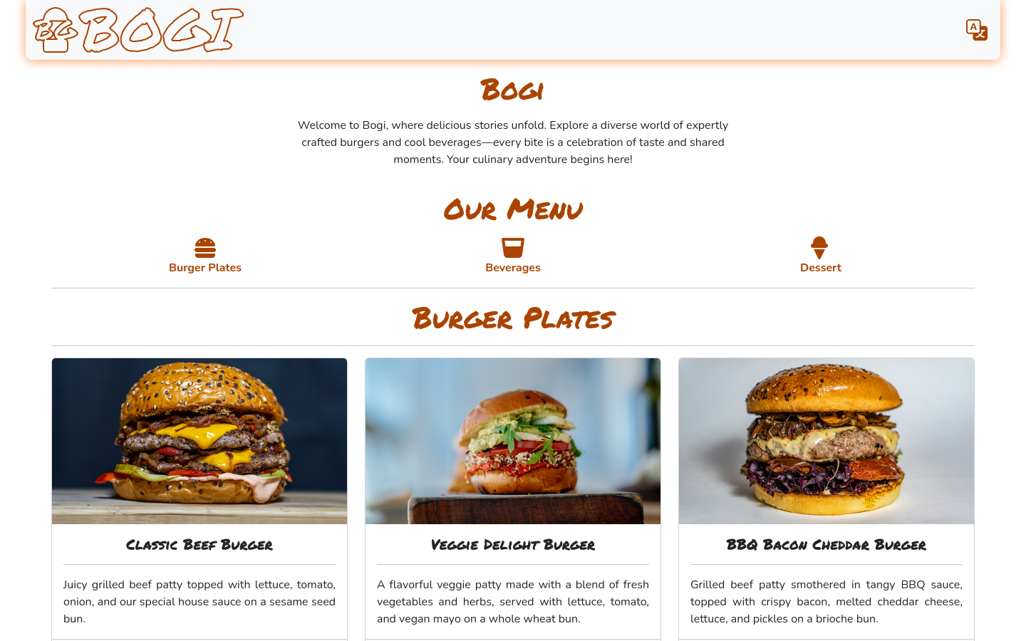 Multi-Page Website Menu for Restaurants